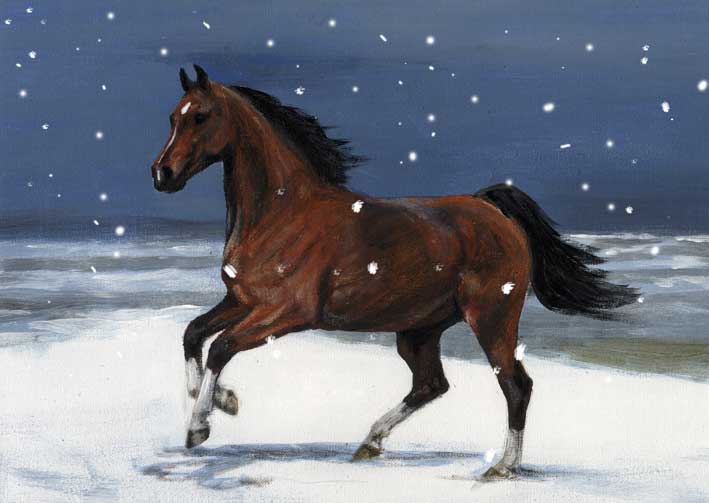 2010, Arab horse, ARTIST, canvas, Landscape, Linda Slater, painting, snow