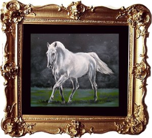 2010, acrylic, art, ARTIST, artwork, canvas, canvas painting, equestrian, equine, Ghost, grey, horse, Landscape, Linda Slater, painting, painting by Linda Slater, portrait