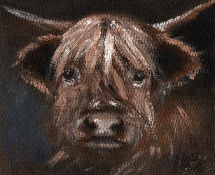 2012, acrylic, art, ARTIST, artwork, cattle, cute, Highland cow, Linda Slater, painting