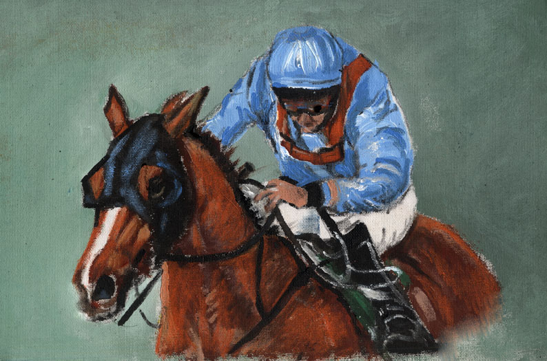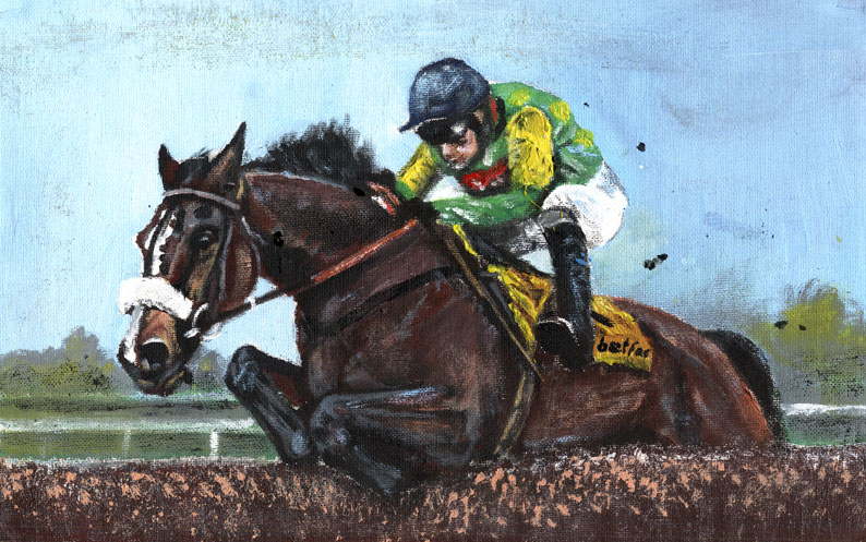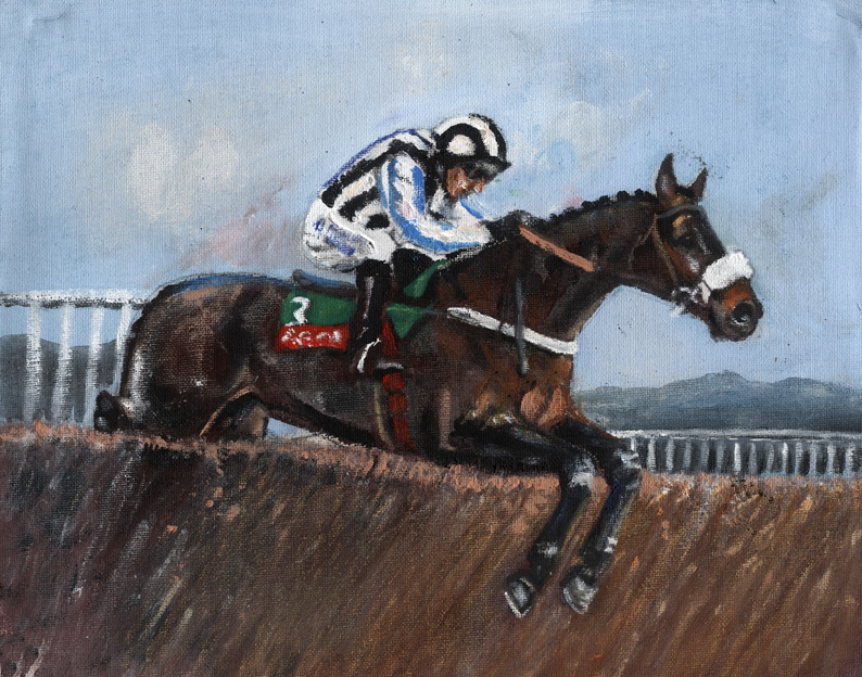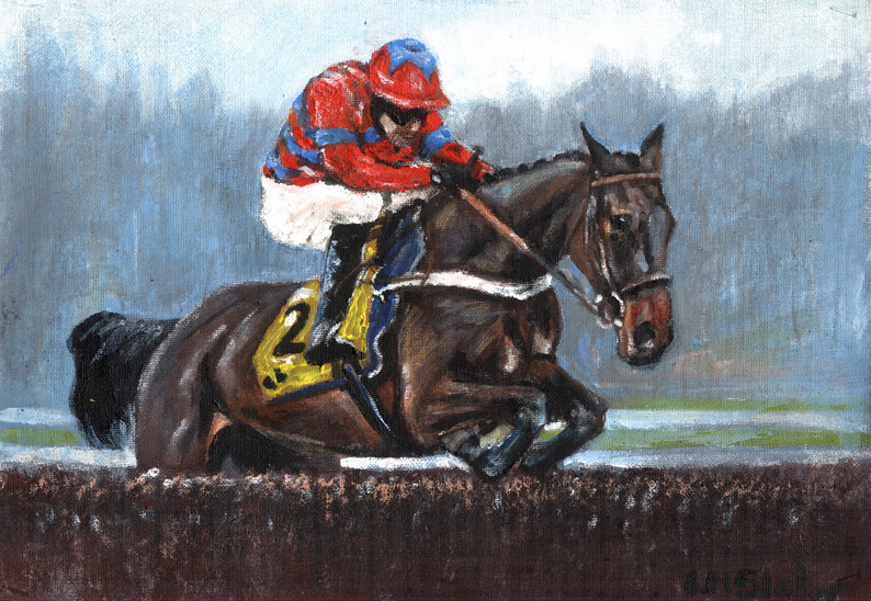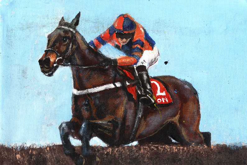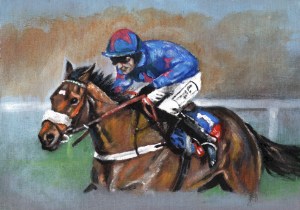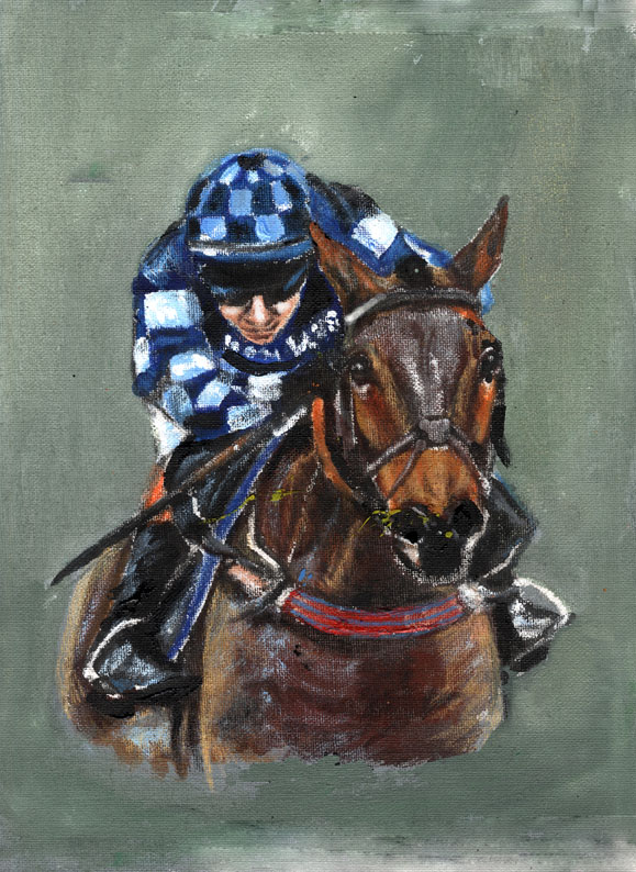2012, acrylic, art, ARTIST, artwork, canvas painting, Cue Card, drawing, equestrian, equine, horse, Horse Racing, Horses, Linda Slater, new, painting, painting by Linda Slater, racing, Tizzard