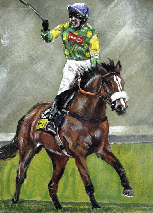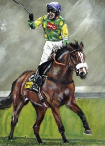 2012, acrylic, art, ARTIST, artwork, canvas, canvas painting, equestrian, equine, famous, horse, Horse Racing, Horses, kauto star, King Kauto, Linda Slater, new, painting, paul nicholls, portrait, racing, ruby walsh, winner