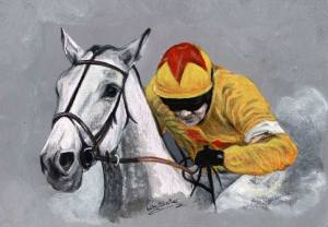 2012, acrylic, art, ARTIST, artwork, canvas, canvas painting, Daryl Jacob, equestrian, equine, famous, Grand National, Grand National 2012, grey, horse, Horse Racing, Horses, Linda Slater, Neptune Collonges, new, painting, painting by Linda Slater, paul nicholls, portrait, racing, Sunnyhillboy, winner