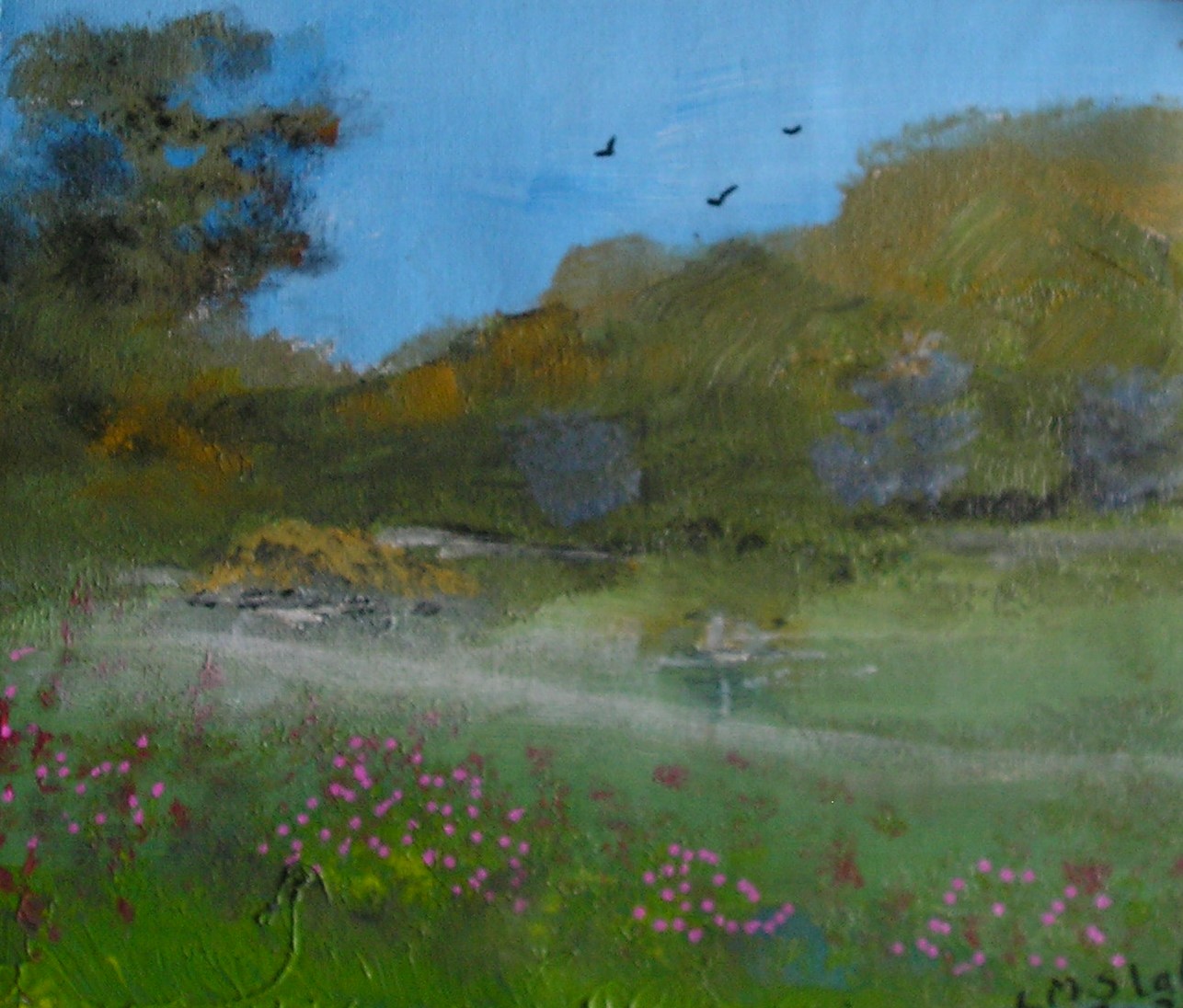 A HAPPY PLACE 01 Sunday Aug 2021 Posted by Linda Mary Slater in Uncategorized ≈ Leave a comment I had an old box canvas that needed some paint and this appeared! My dogs would love it here and would be straight in the water. Large Box Canvas 221/2″ x 221/2″ Some days I think I’ve dried up and have no ideas but once I make a start things just happen like this one today.