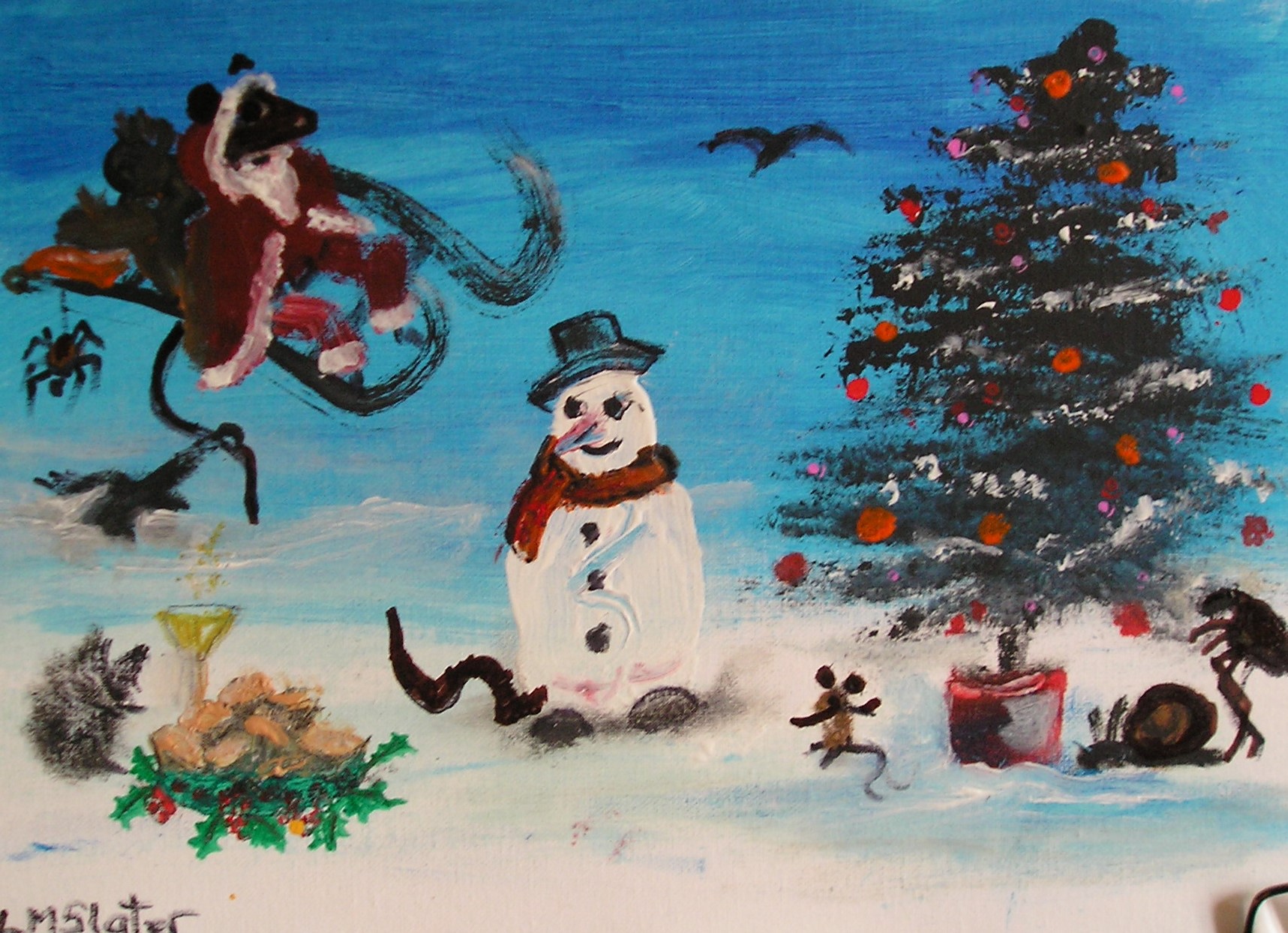 “HERE COMES SANTA CLAWS!” 05 Friday Nov 2021 Posted by Linda Mary Slater in Uncategorized ≈ Leave a comment TagsARTIST, artwork, christmas, Linda Slater, painting, painting by Linda Slater Christmas with THE ODD ONES.